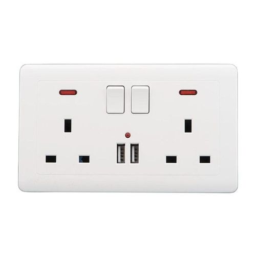 Double Wall British Plug Socket 2 Gang 13A With 2